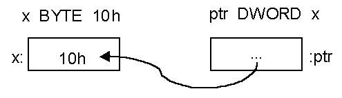 PDWORD TYPEDEF PTR DWORD .data array WORD 10h, 20h, 30h, 40h pointer PDWORD array .code mov ecx, 2 mov eax, 0 mov esi, pointer L1: add eax, [esi] add esi, 4 loop L1 call WriteHex |