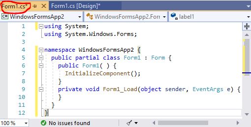 1. Double click on Form1, the Code Editor for Form1 as shown below will appear. The top of the Code Editor consists of a list of objects such as Form and their associated events or procedures such as Load.