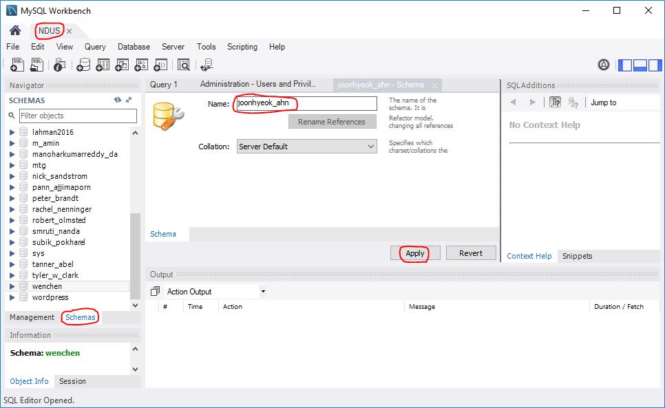 Create Schema: wenchen_hu (assuming the ID is wenchen.hu, for example)