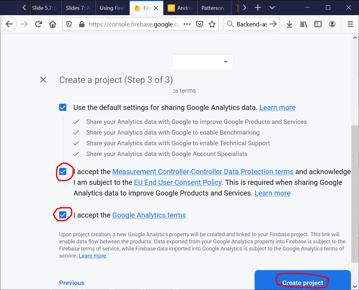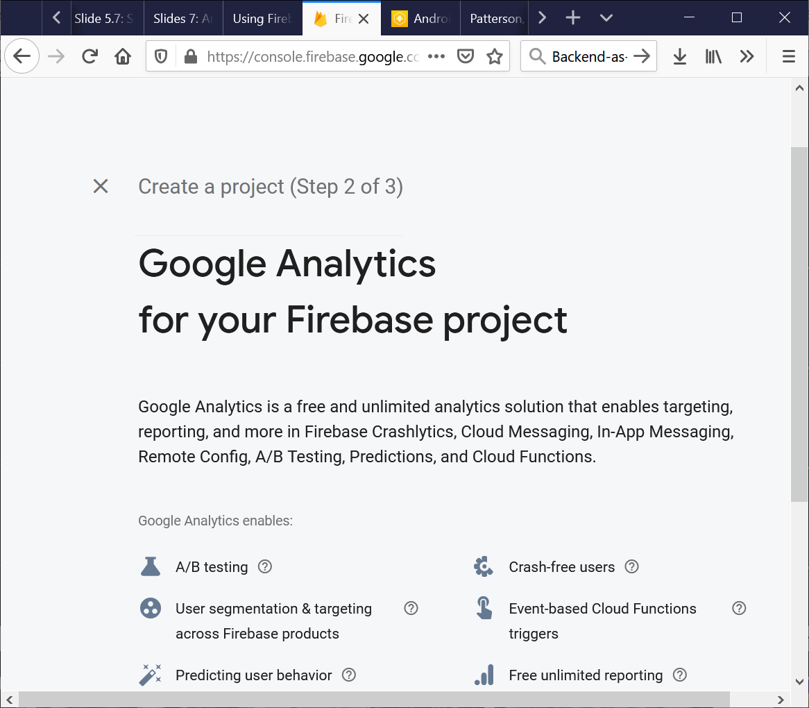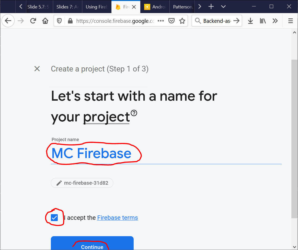 - Start creating your first Firebase project:
