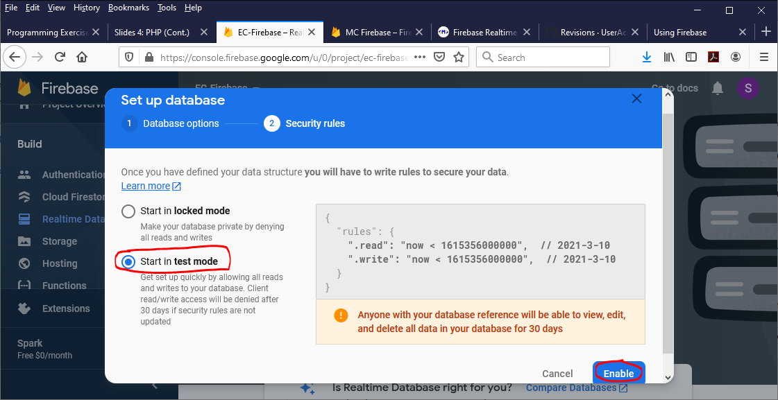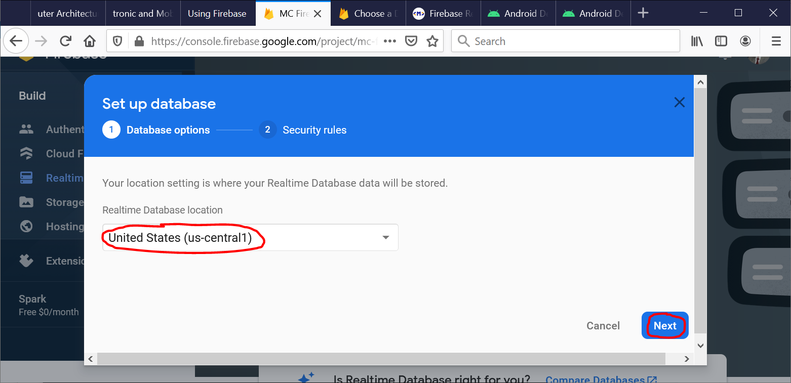 ⇓ (after checking “Add the Realtime Database to your app”)