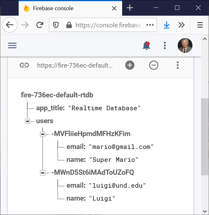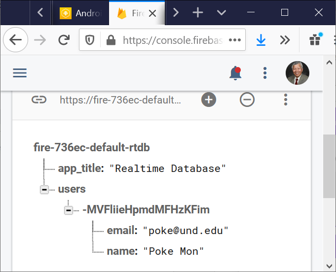 The following steps show how to use the Firebase database: