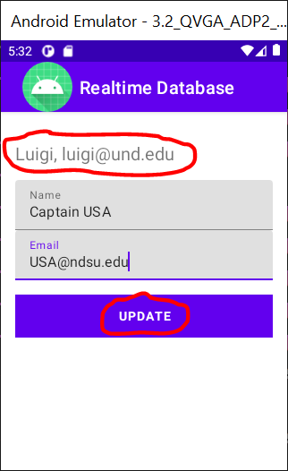 This application updates and shows the user’s profile consisting of a name and an email address.