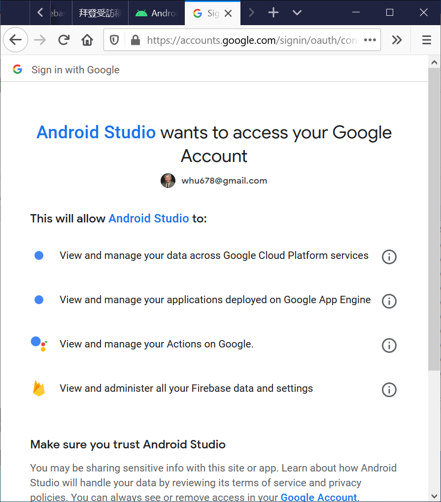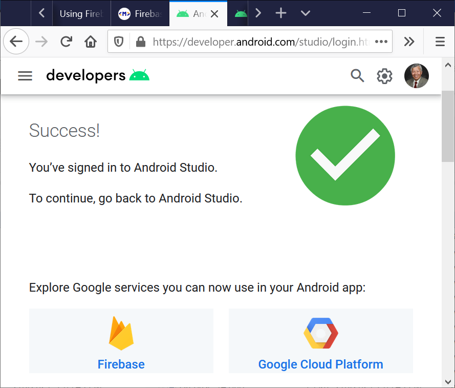 - In Android Studio, log in with your email address.