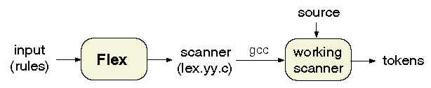 flex generates as output a C source file, lex.yy.c, which defines a routine yylex( ).