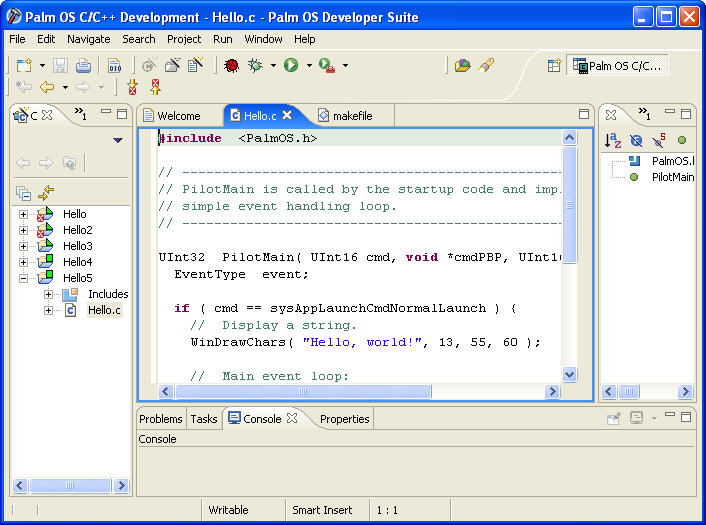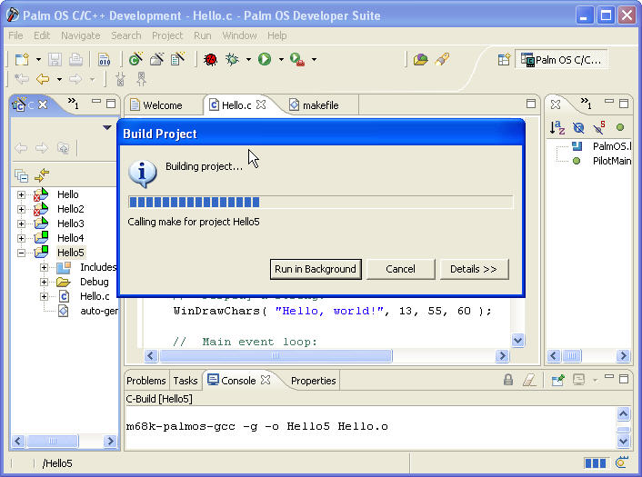 | C:\Program Files\PalmSource\Palm OS Developer Suite\workspace\Hello5\Hello.c